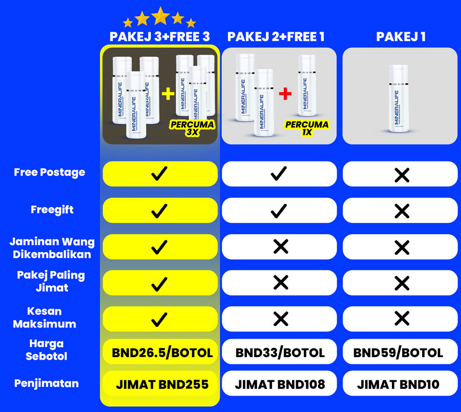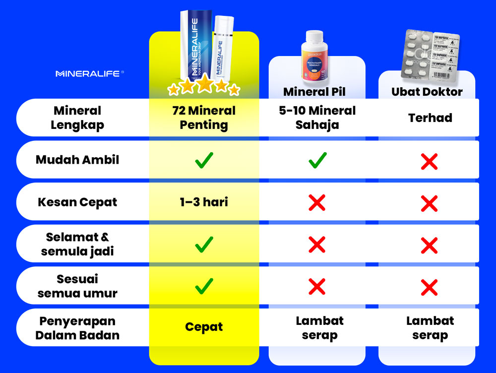 Tiada kesan sampingan kerana Mineralife diformulasi daripada 72 mineral semula jadi, bebas bahan kimia berbahaya.